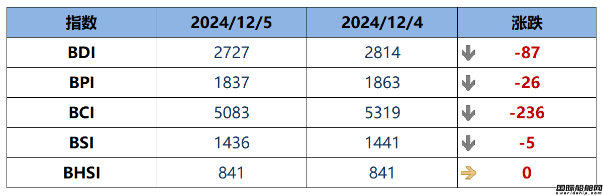 - BDI指数周五下跌87点至2727点