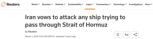 - VLCC日租金突破42万美元!伊朗表态将打击所有通过霍尔木兹海峡船舶
