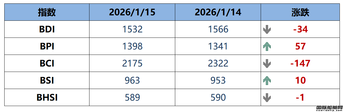 - BDI指数周四下跌34点至1532点