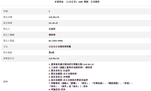 - 阳明海运任命新总经理,管理层加速年轻化