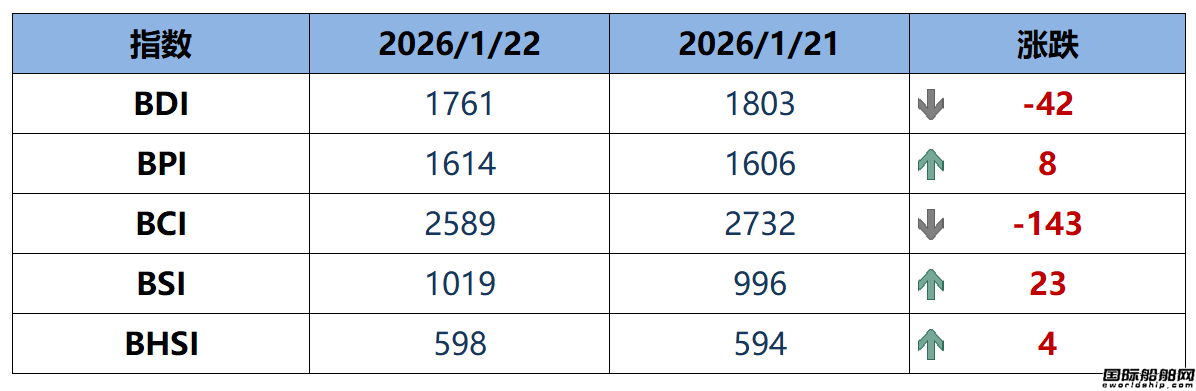 - BDI指数周四下跌42点至1761点