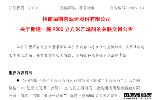 - 两型3艘超13亿!招商南油订造新船