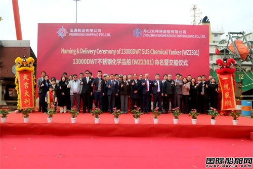 - 大神洲造船交付泓通航运首艘13000吨不锈钢化学品船
