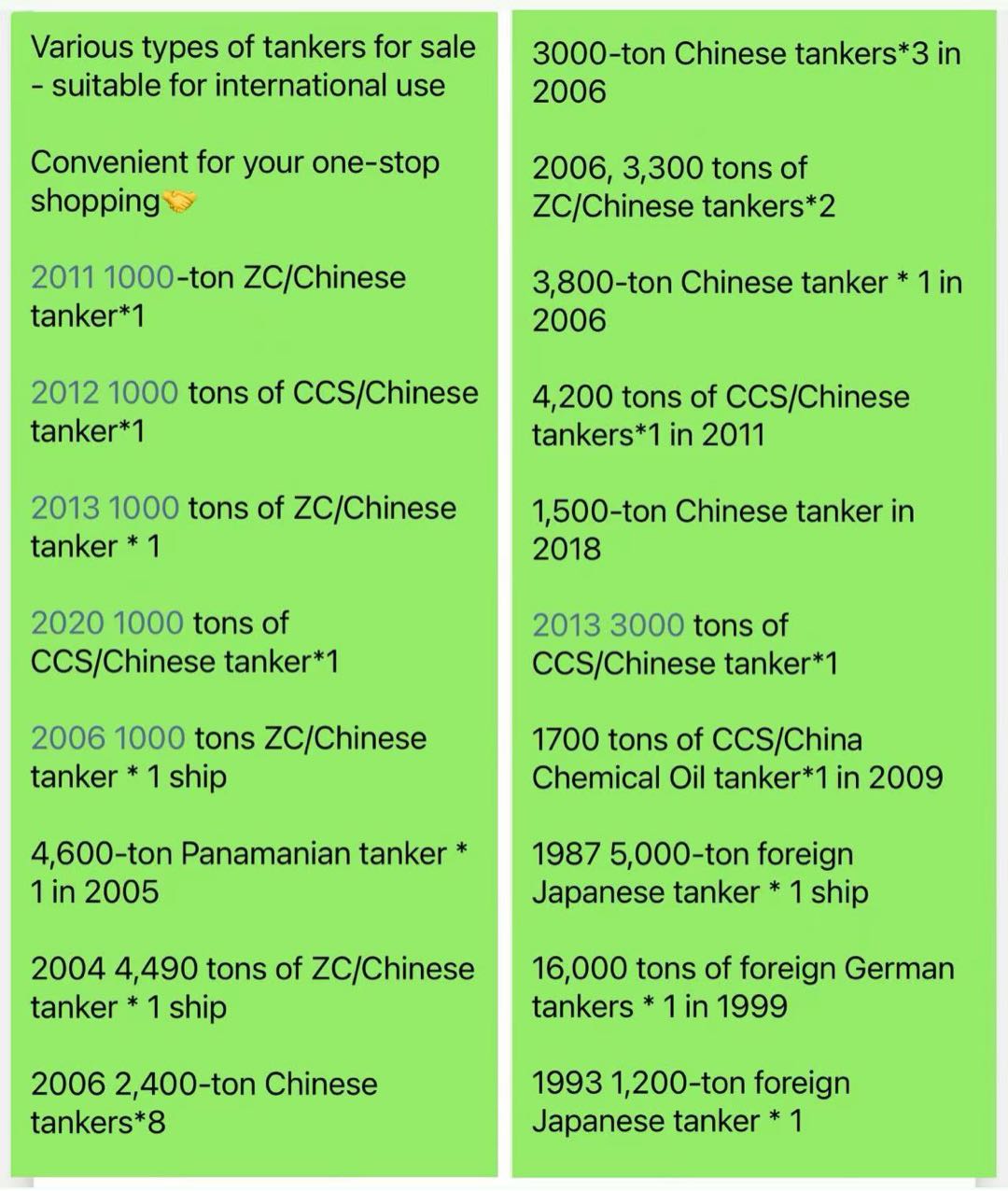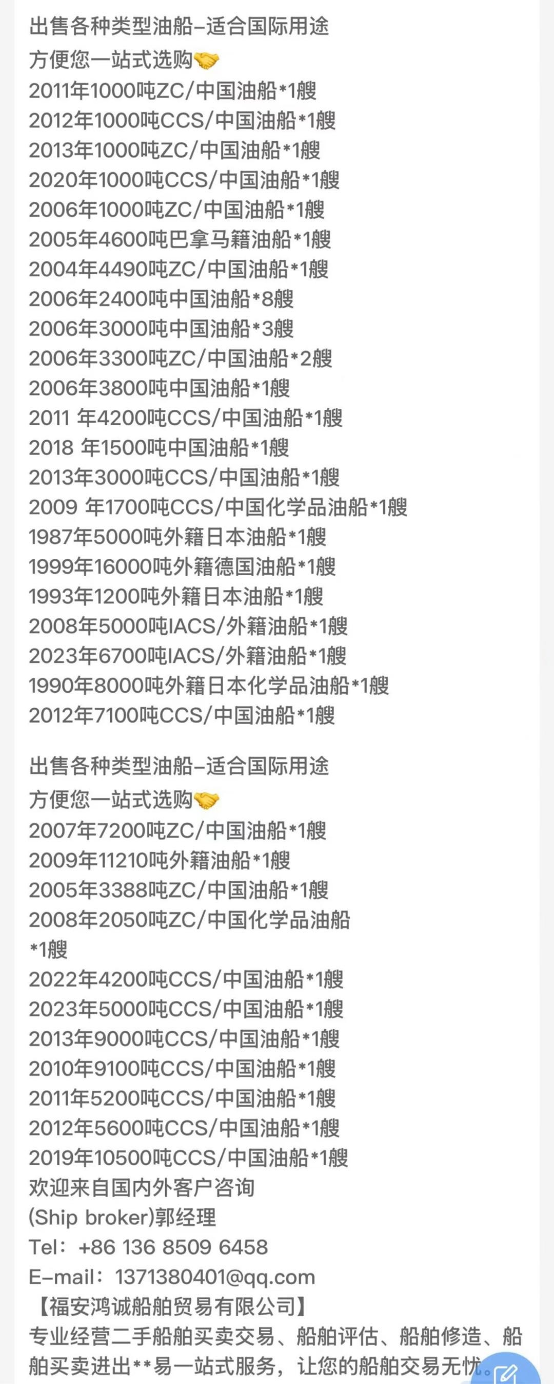 出售各种类型油船-适合国际用途 方便您一站式选购